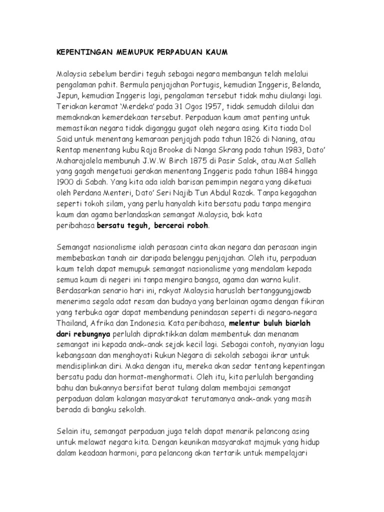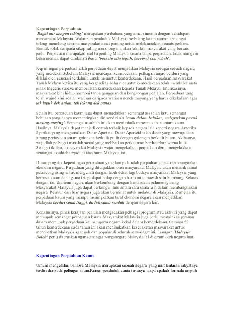 Contoh Karangan Kepentingan Perpaduan Kaum Di Malaysia Pdf
